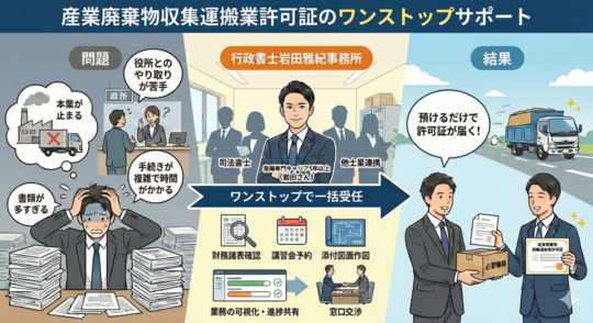 初めまして、産廃業関係を専門としている行政書士岩田です。このページをご覧頂き有難うございます。本日は産廃収集運搬の申請に関する何かしらのお悩みを持ってご覧頂いていると思います。産廃専門の当事務所の行政書士が、課題を掘り下げながら解決の糸口を見つけて行く。そんなページになっていますので、最後まで読んで頂けたら幸いです。それでは1つずつ進めて参りましょう!